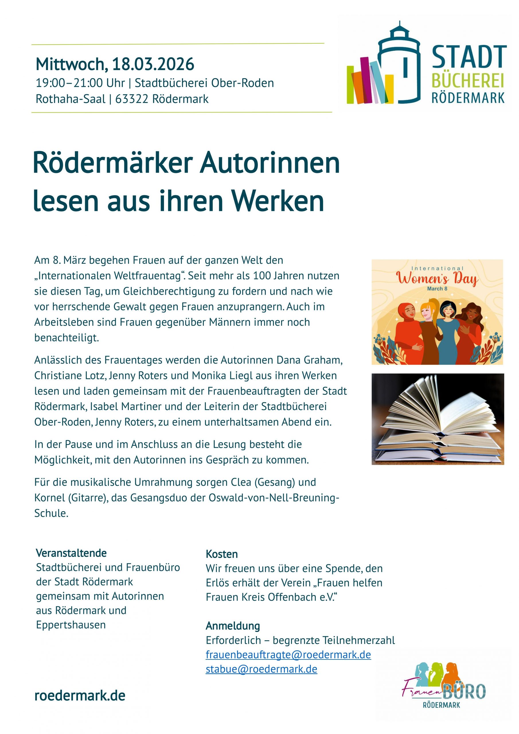 lesen und laden gemeinsam mit der Frauenbeauftragten der Stadt Rödermark, Isabel Martiner und der Leiterin der Stadtbücherei